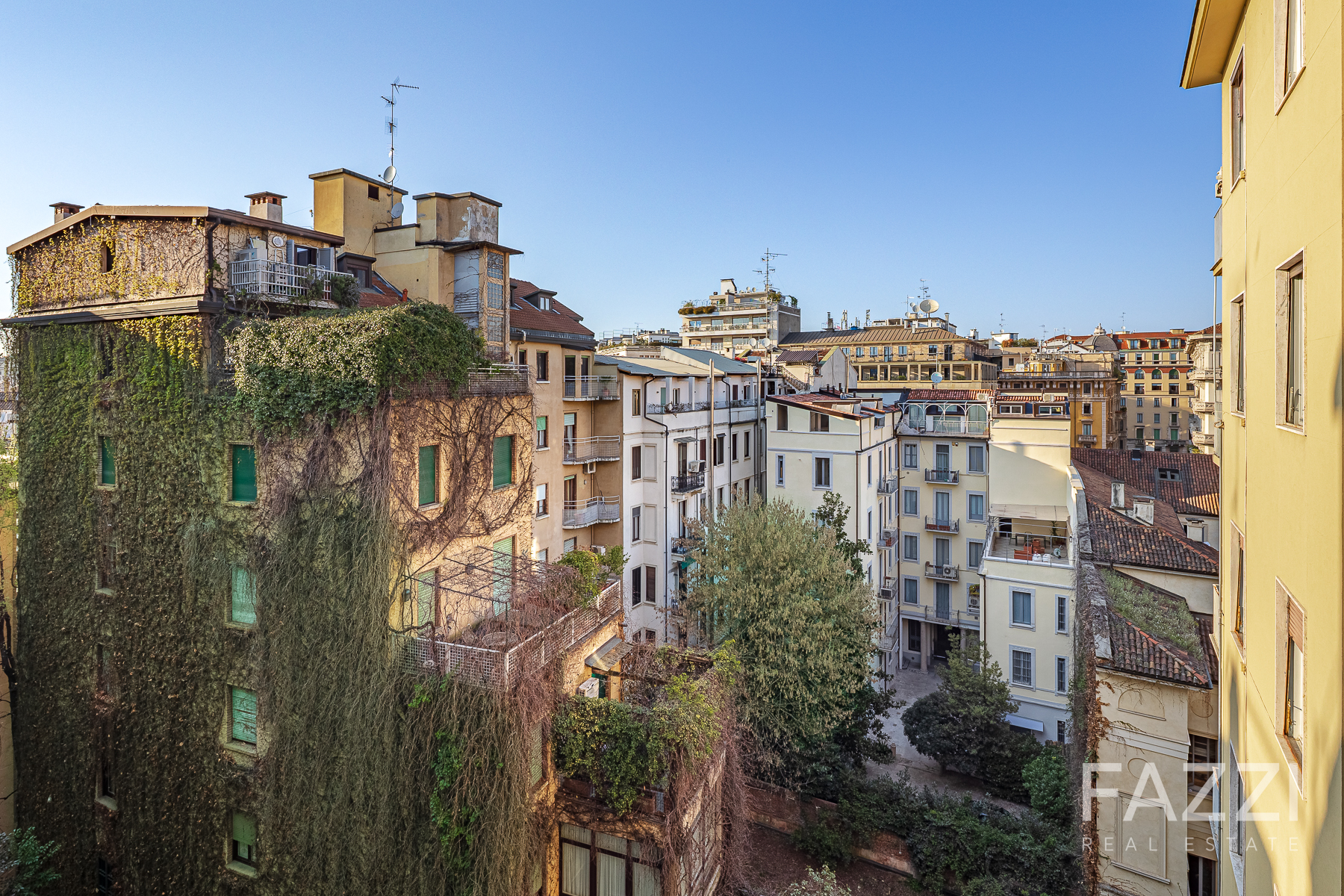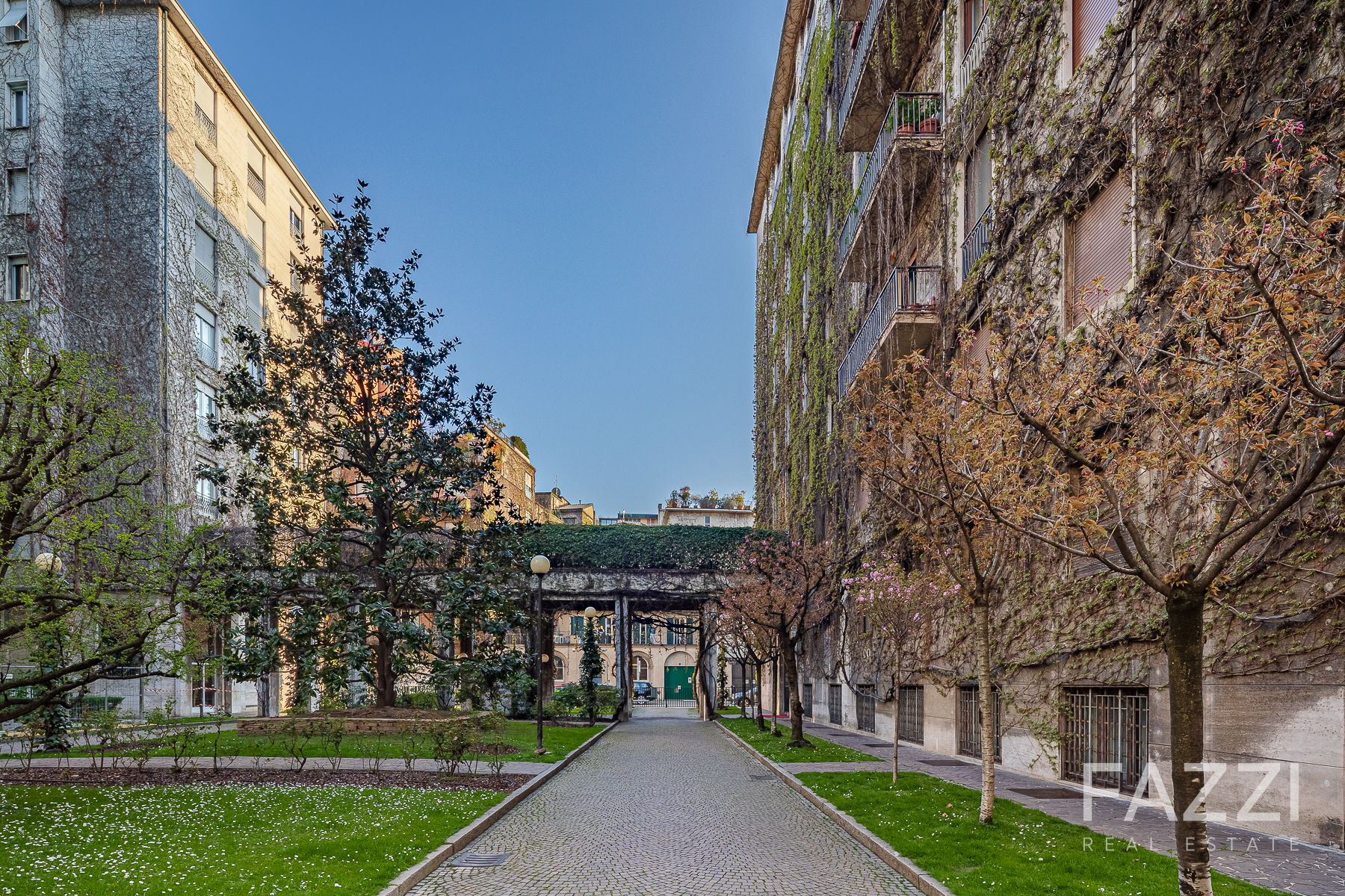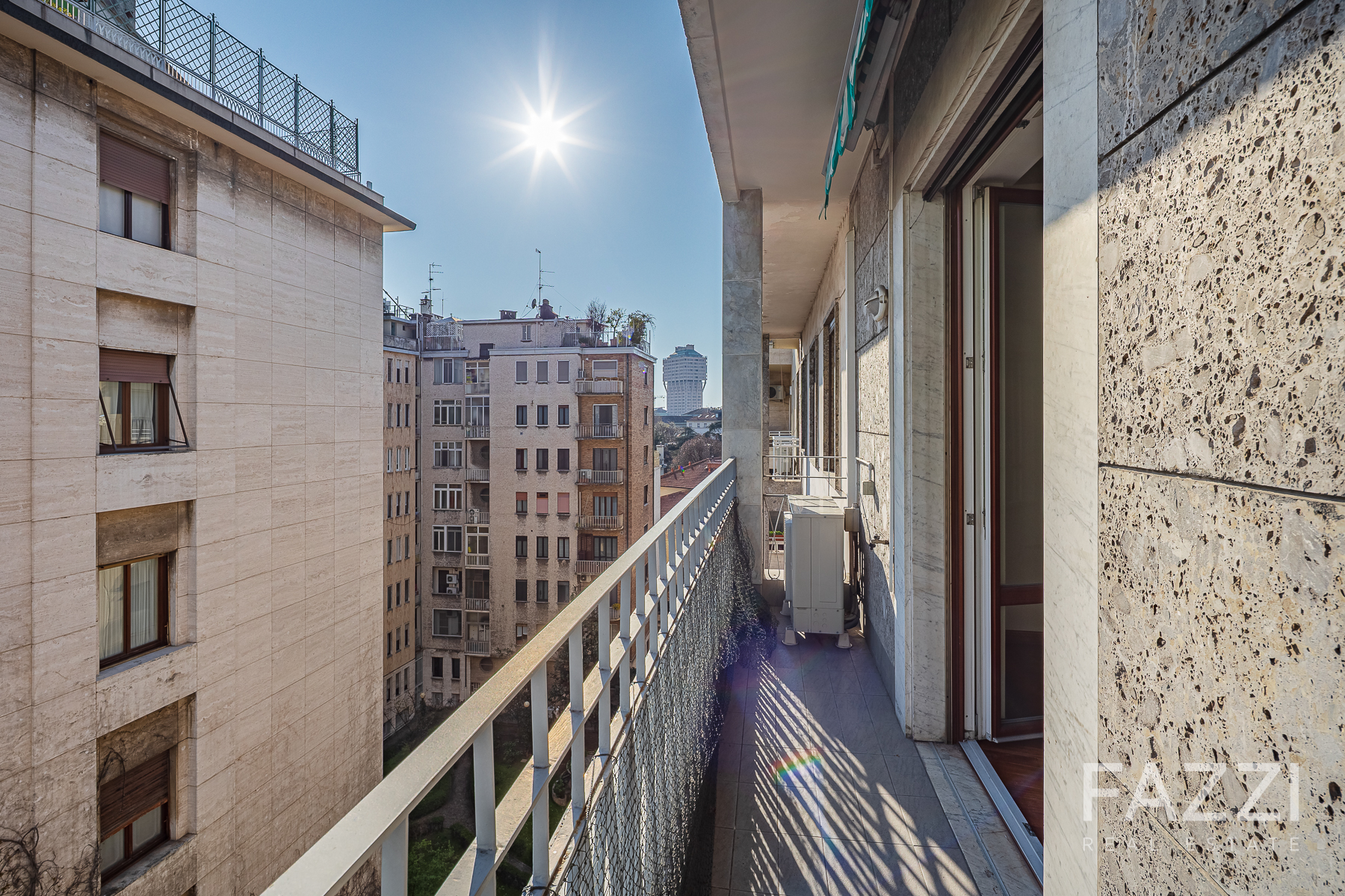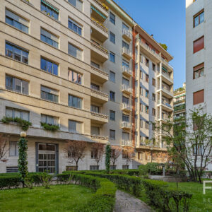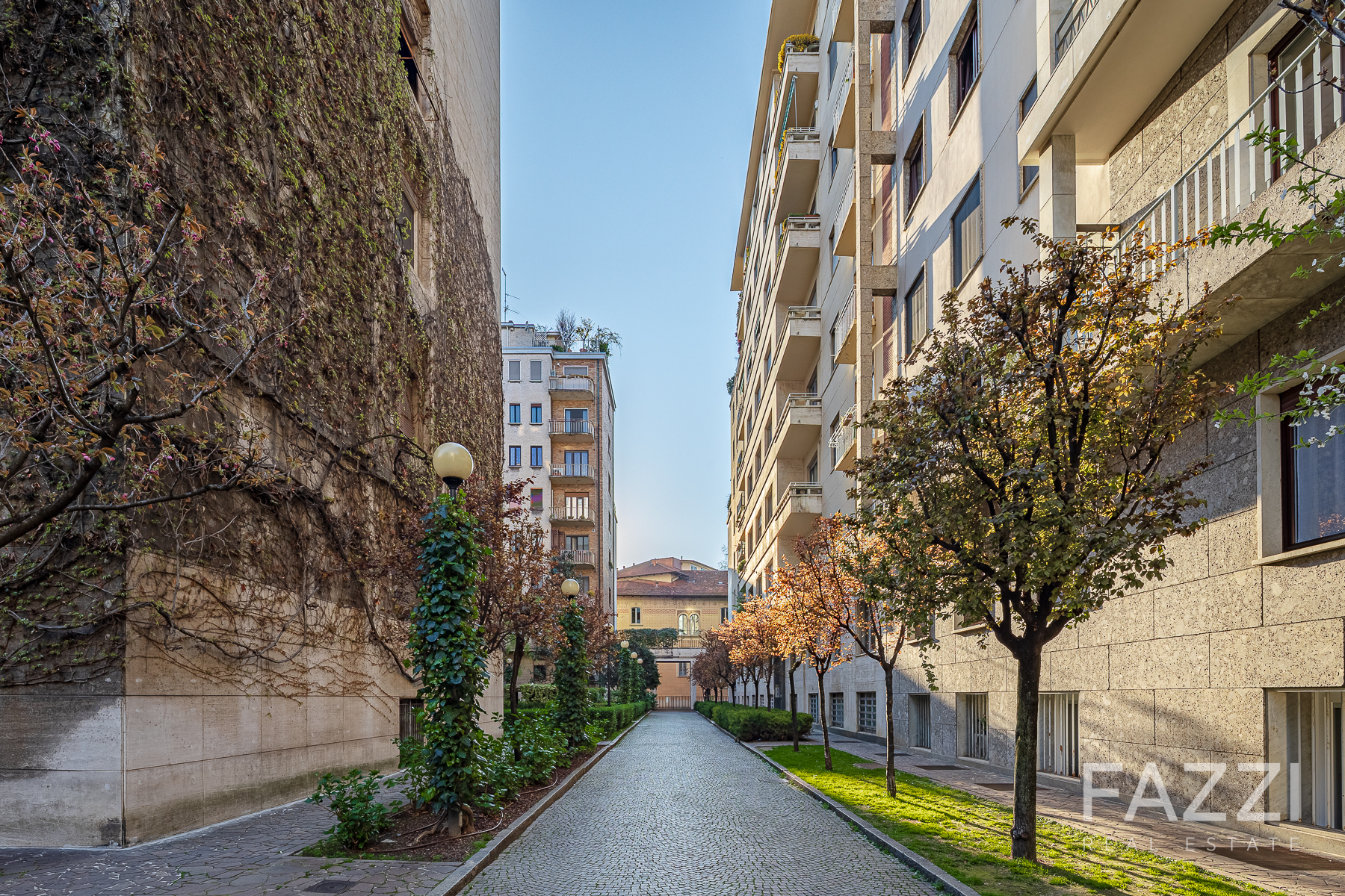 Nel cuore di Milano, a due passi dai rinomati Giardini Guastalla, proponiamo in vendita un raffinato appartamento sito al sesto piano di un signorile palazzo progettato nel 1954, firmato dall’architetto Bela Angelus, che viene citato come “palazzo verde”. L’immobile di 247 mq ed unico al piano, è così composto: ingresso, soggiorno doppio con accesso al balcone e ad un terrazzo affacciato sul verde del giardino condominiale, cucina abitabile, cinque camere da letto di cui due con bagno en suite e cabina armadio, altri due bagni di cui uno utilizzato come lavanderia.