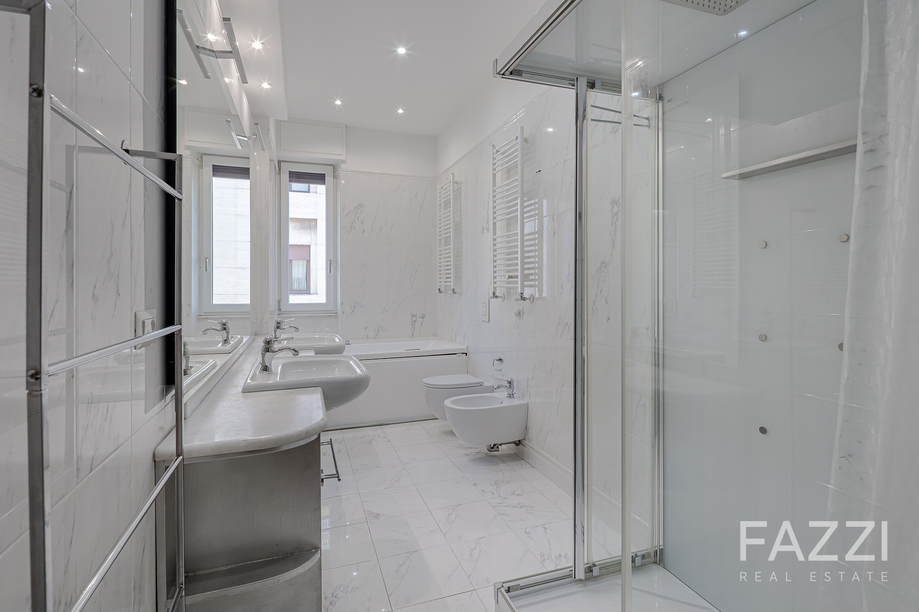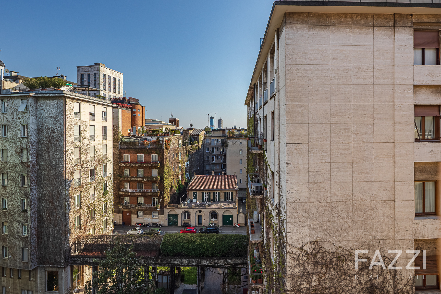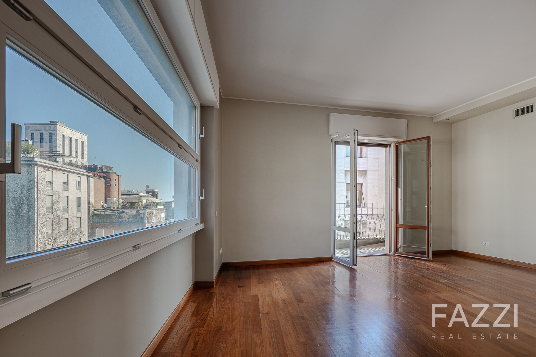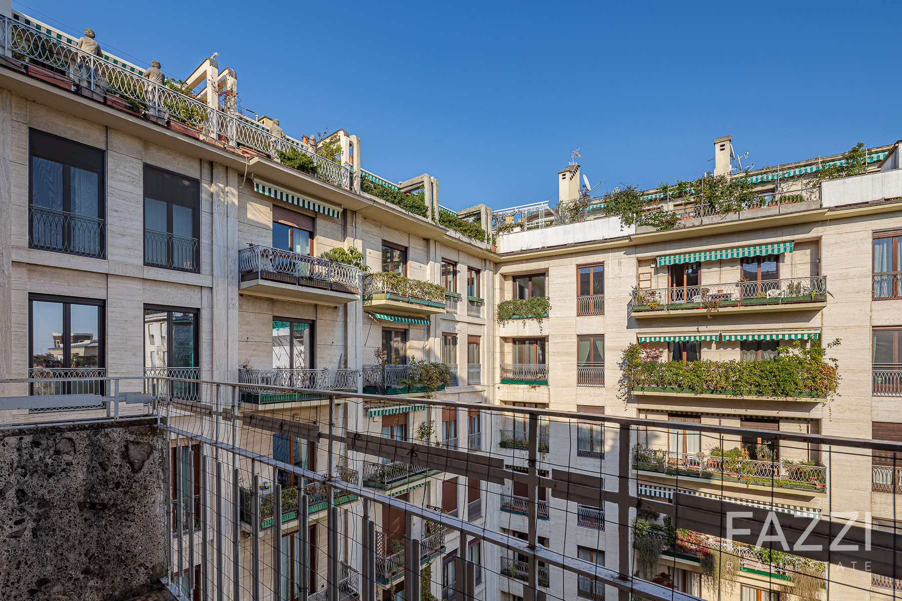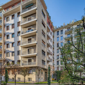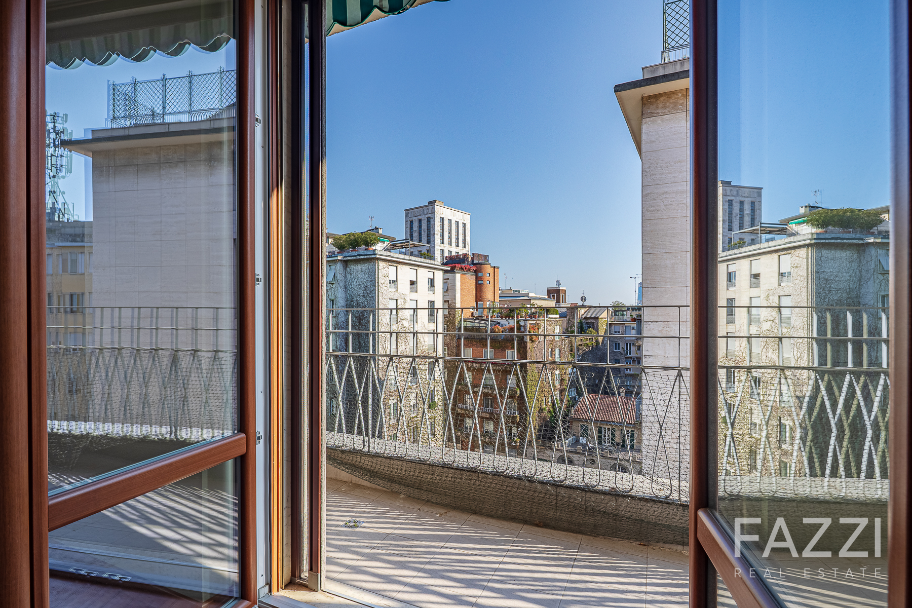 Nel cuore di Milano, a due passi dai rinomati Giardini Guastalla, proponiamo in vendita un raffinato appartamento sito al sesto piano di un signorile palazzo progettato nel 1954, firmato dall’architetto Bela Angelus, che viene citato come “palazzo verde”. L’immobile di 247 mq ed unico al piano, è così composto: ingresso, soggiorno doppio con accesso al balcone e ad un terrazzo affacciato sul verde del giardino condominiale, cucina abitabile, cinque camere da letto di cui due con bagno en suite e cabina armadio, altri due bagni di cui uno utilizzato come lavanderia.