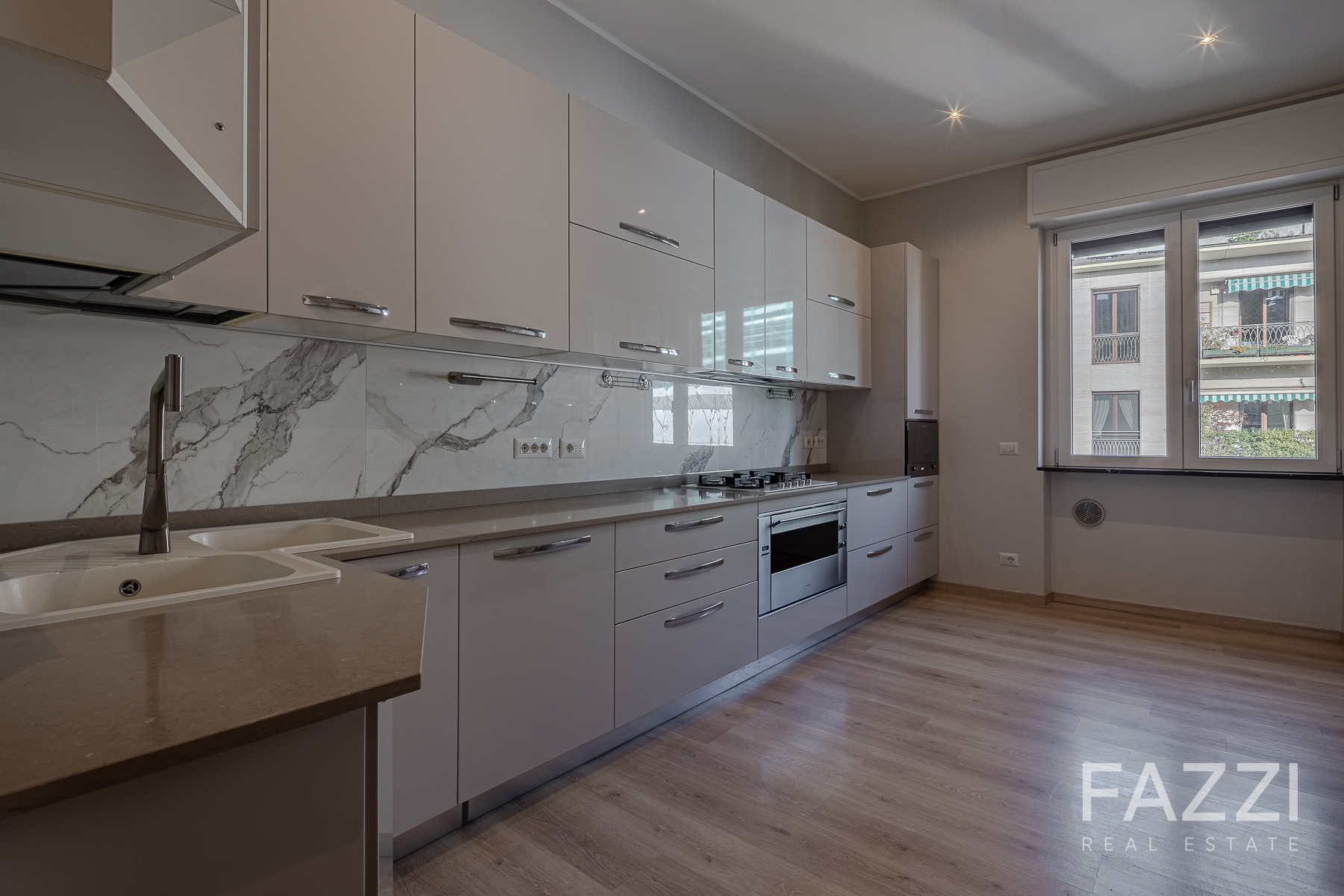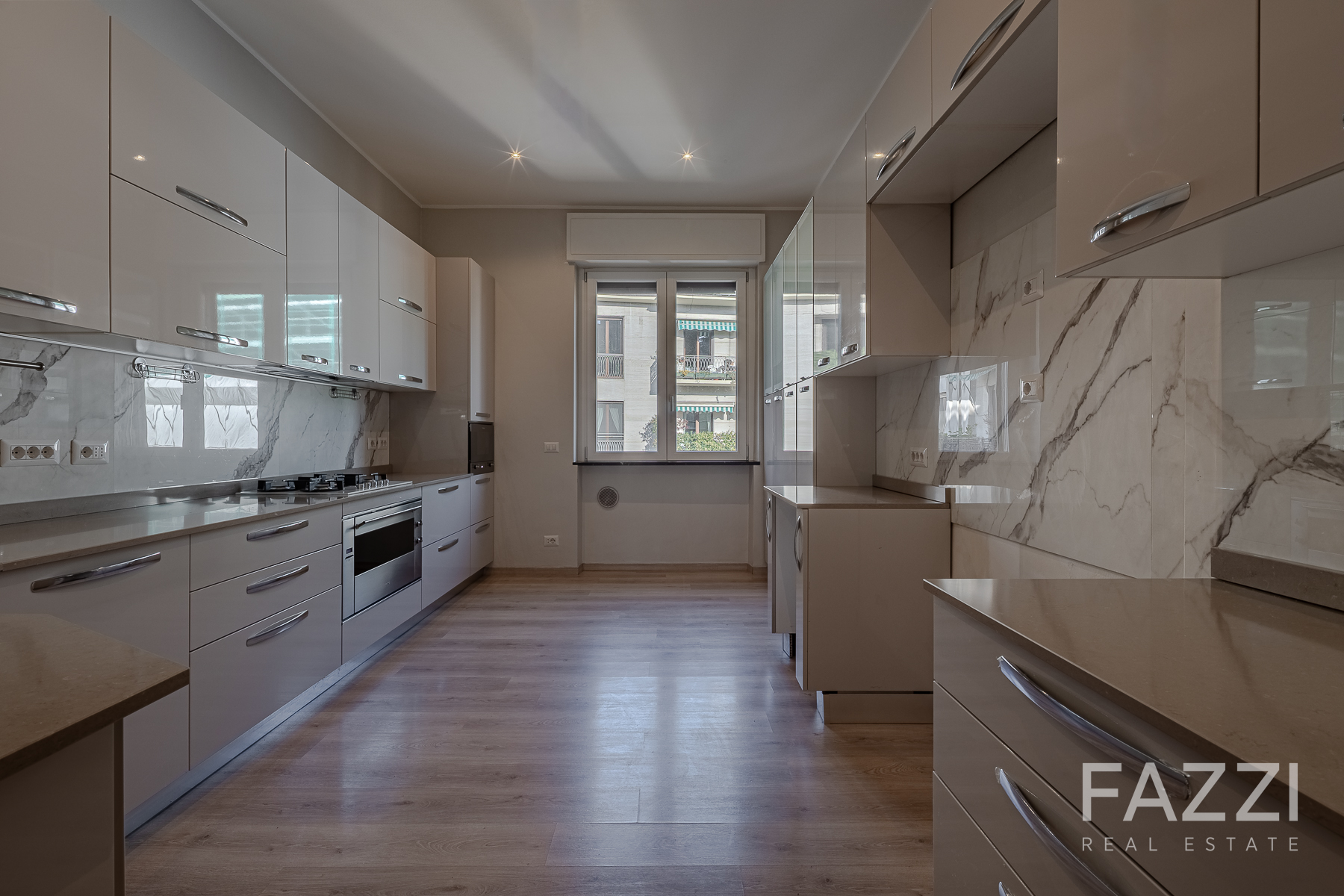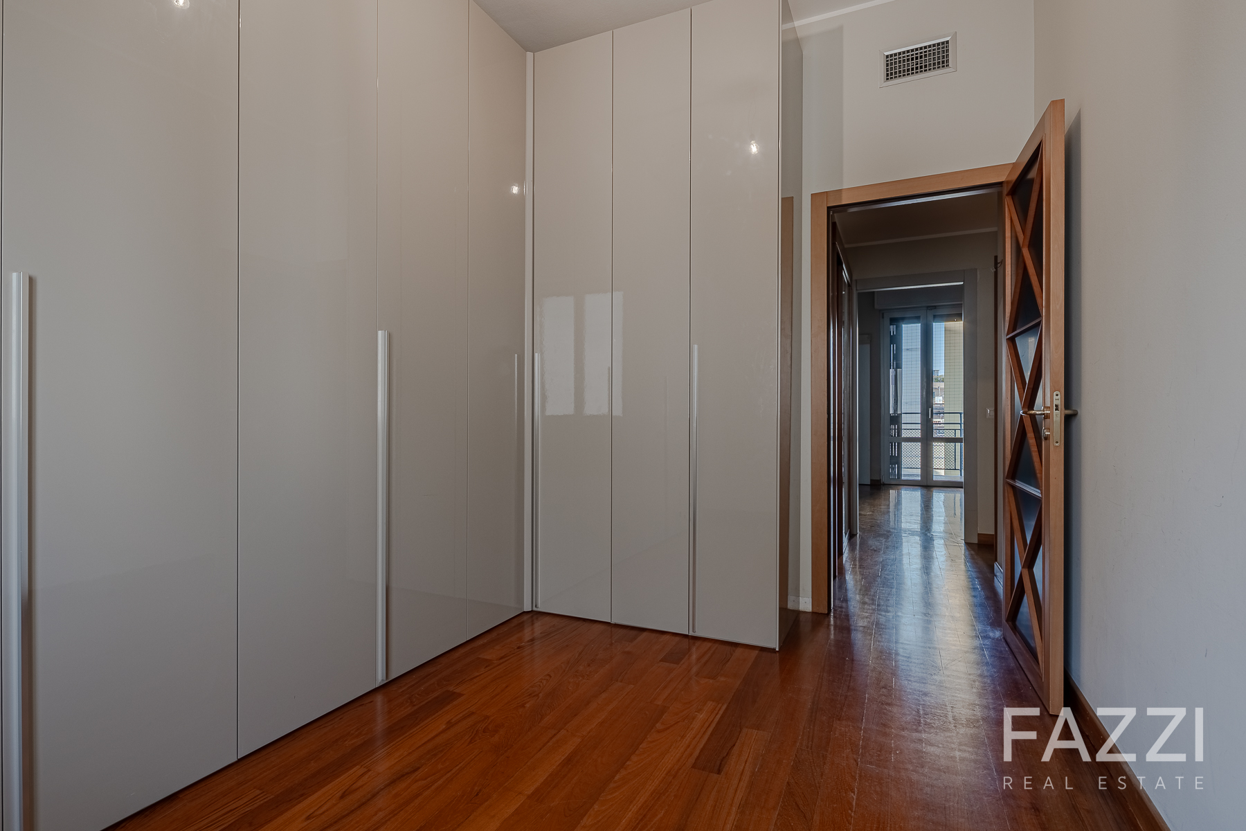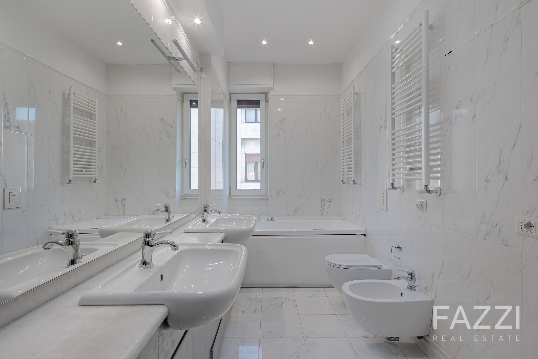 Nel cuore di Milano, a due passi dai rinomati Giardini Guastalla, proponiamo in vendita un raffinato appartamento sito al sesto piano di un signorile palazzo progettato nel 1954, firmato dall’architetto Bela Angelus, che viene citato come “palazzo verde”. L’immobile di 247 mq ed unico al piano, è così composto: ingresso, soggiorno doppio con accesso al balcone e ad un terrazzo affacciato sul verde del giardino condominiale, cucina abitabile, cinque camere da letto di cui due con bagno en suite e cabina armadio, altri due bagni di cui uno utilizzato come lavanderia.