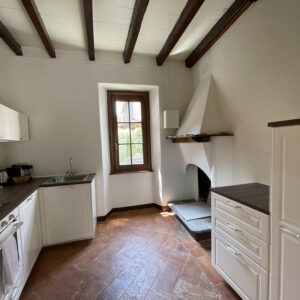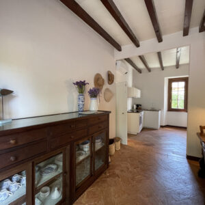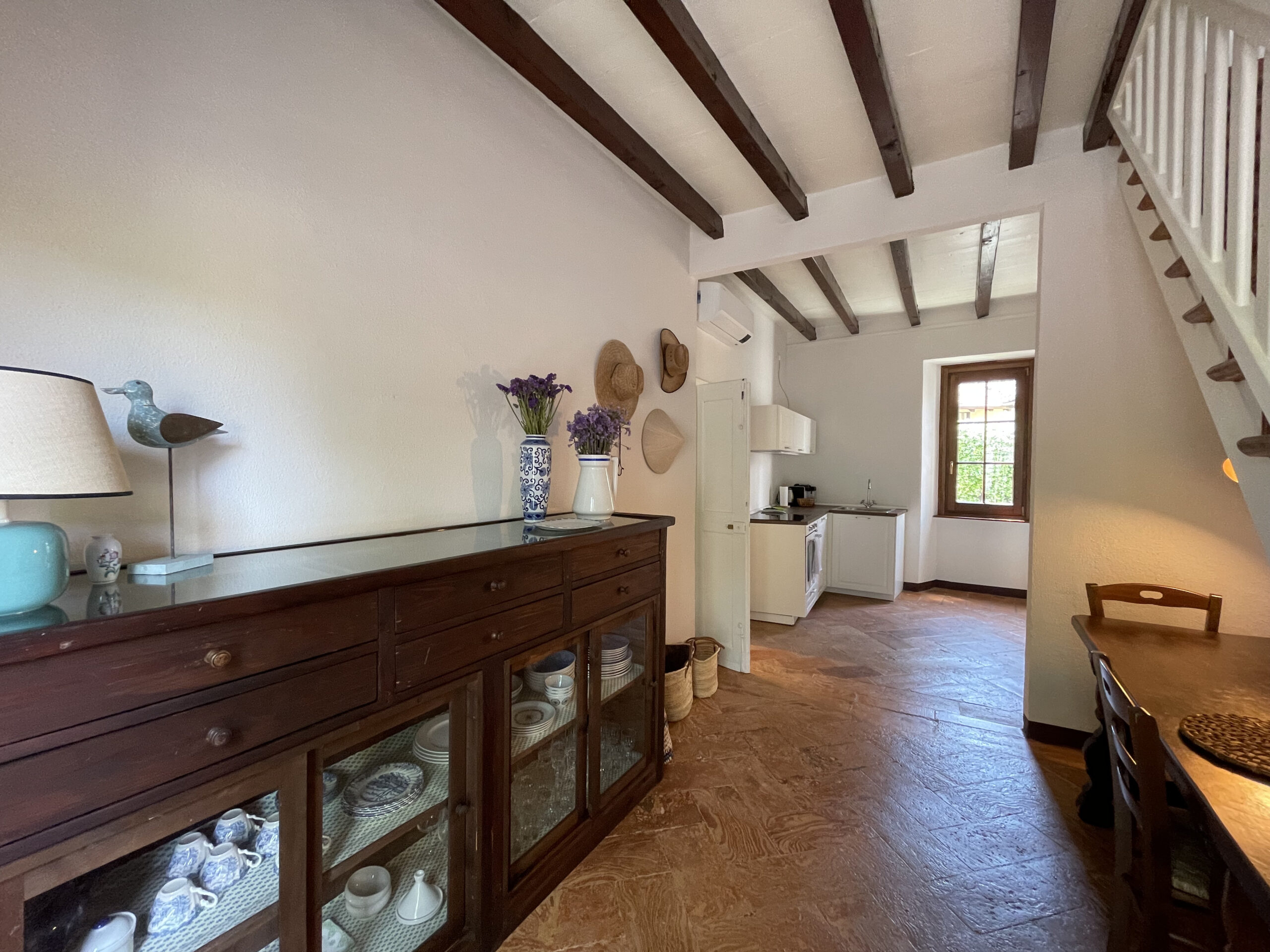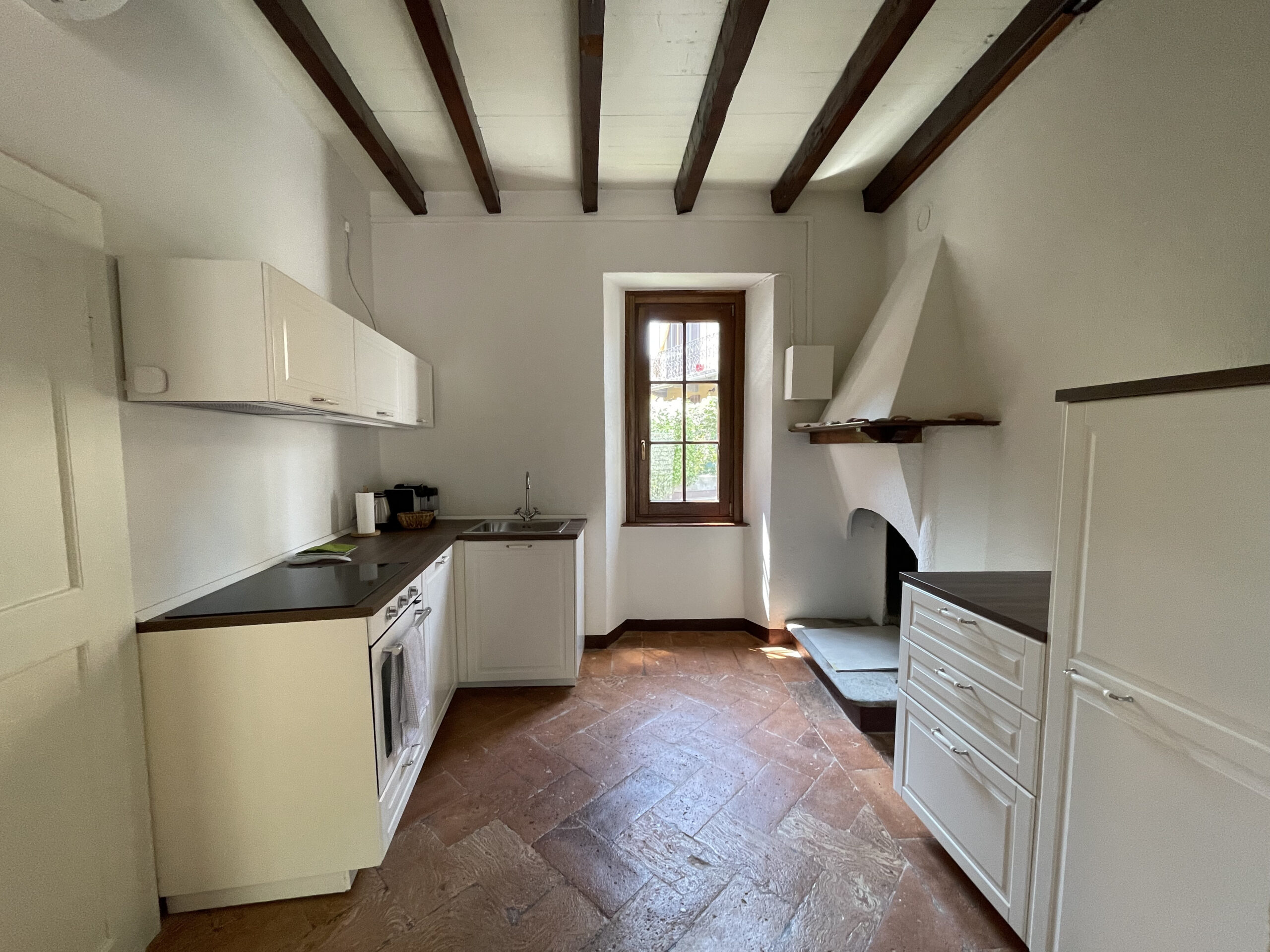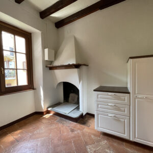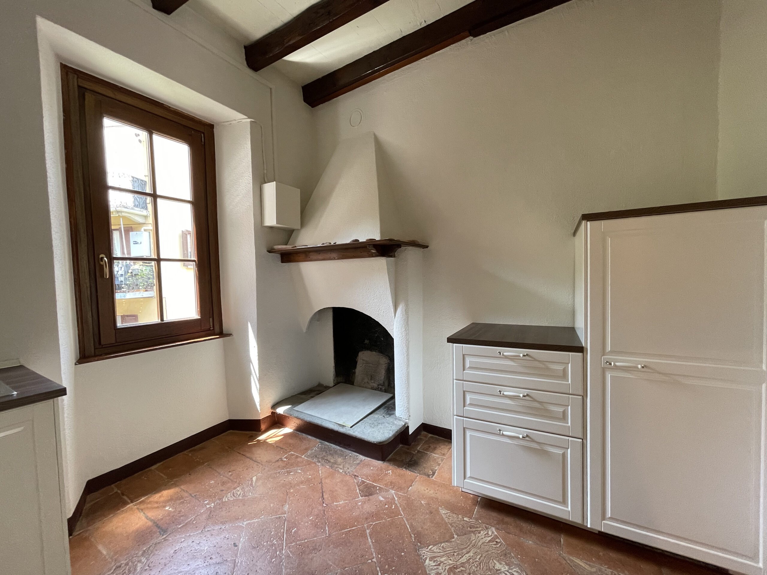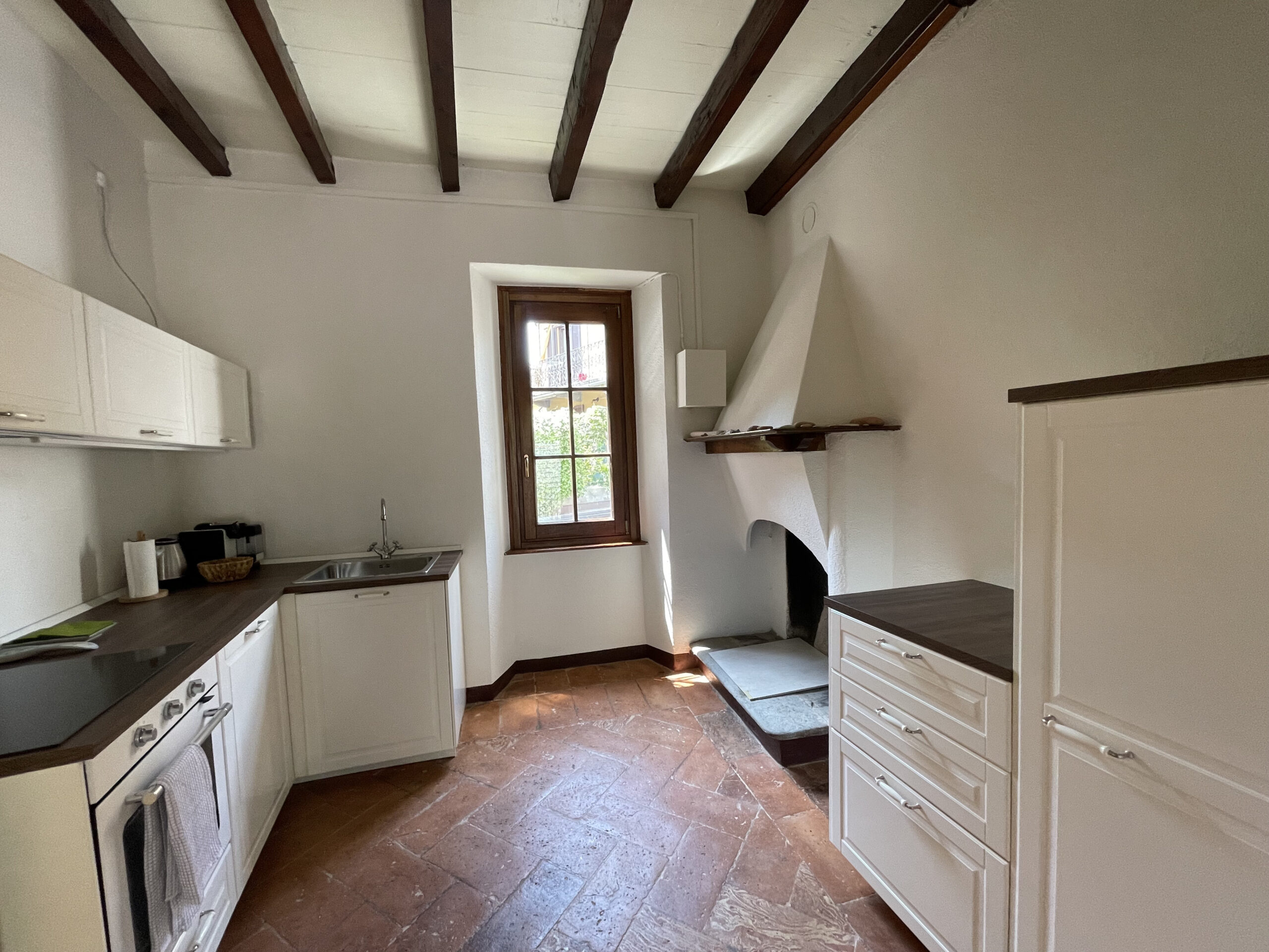 Sala da pranzo e cucina, arredata e corredata, arricchita da un antico camino dove un tempo si cucinava il pesce pescato nel lago.