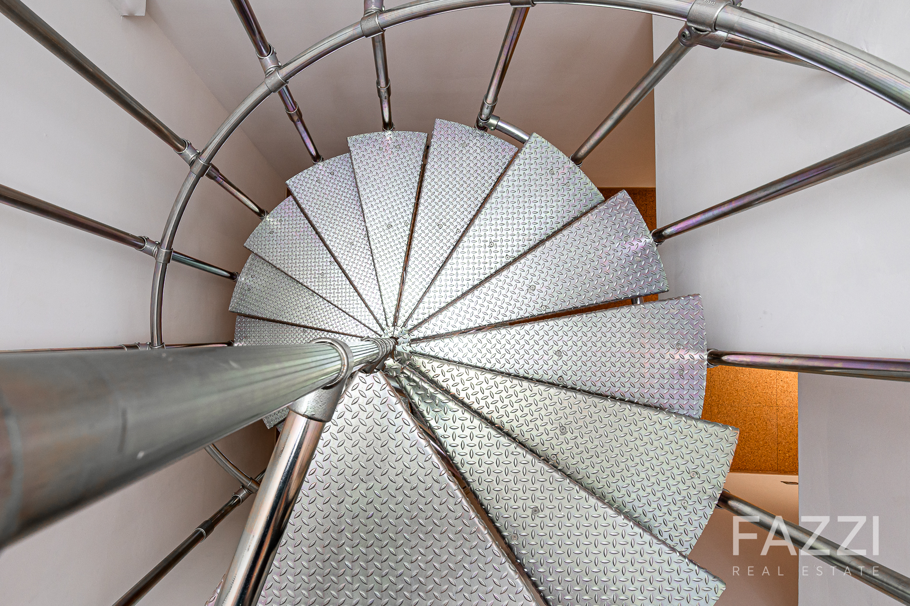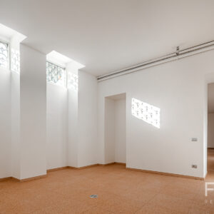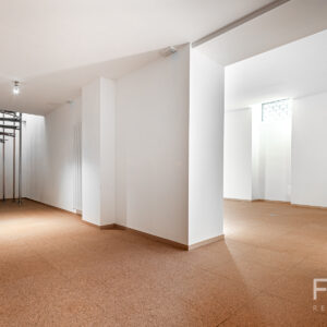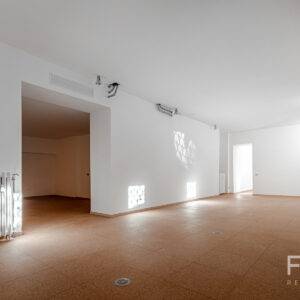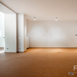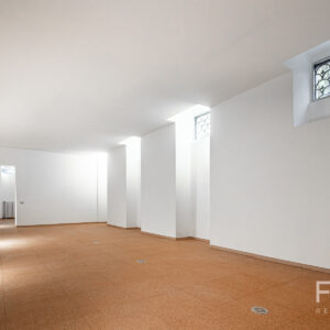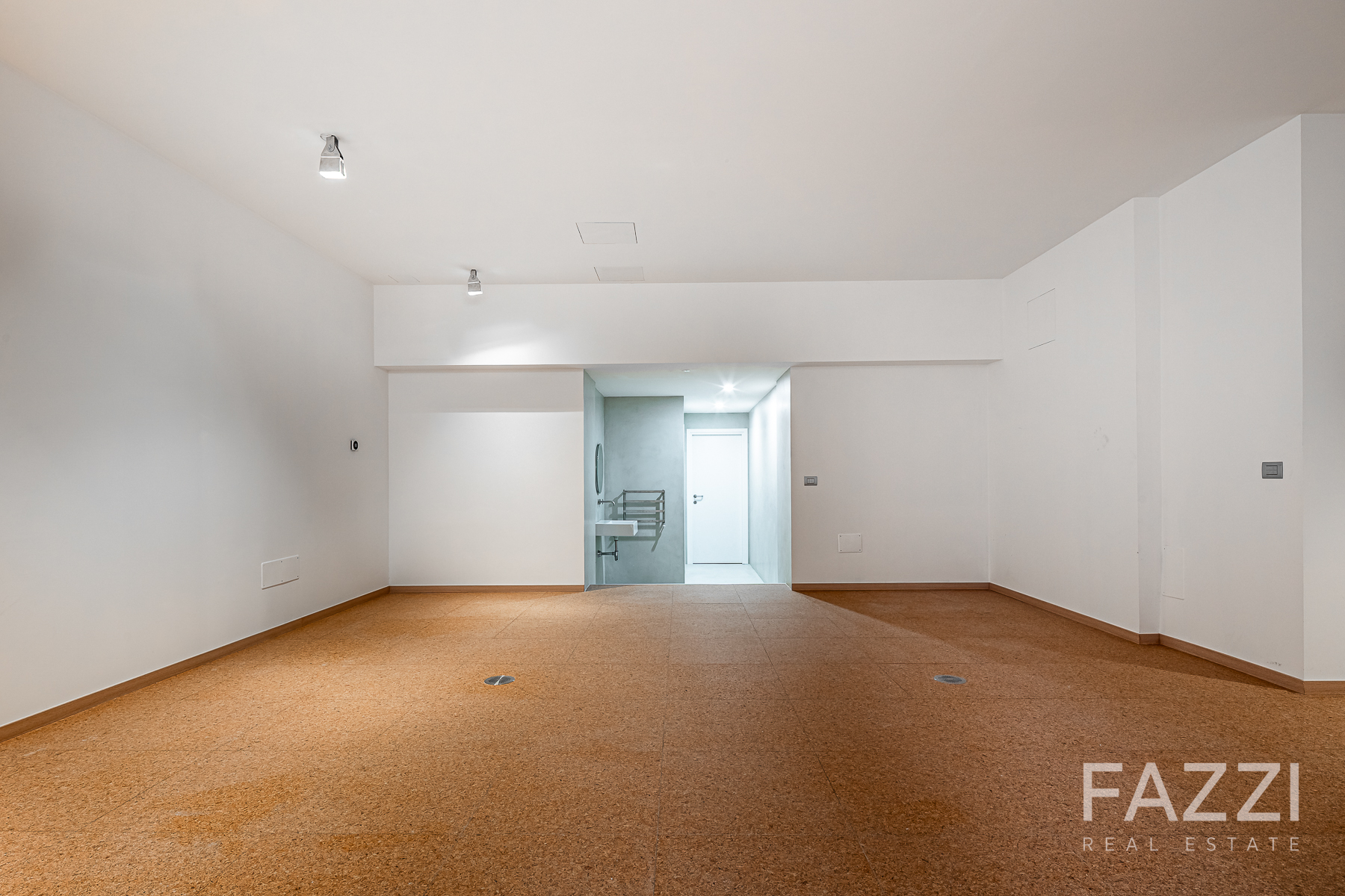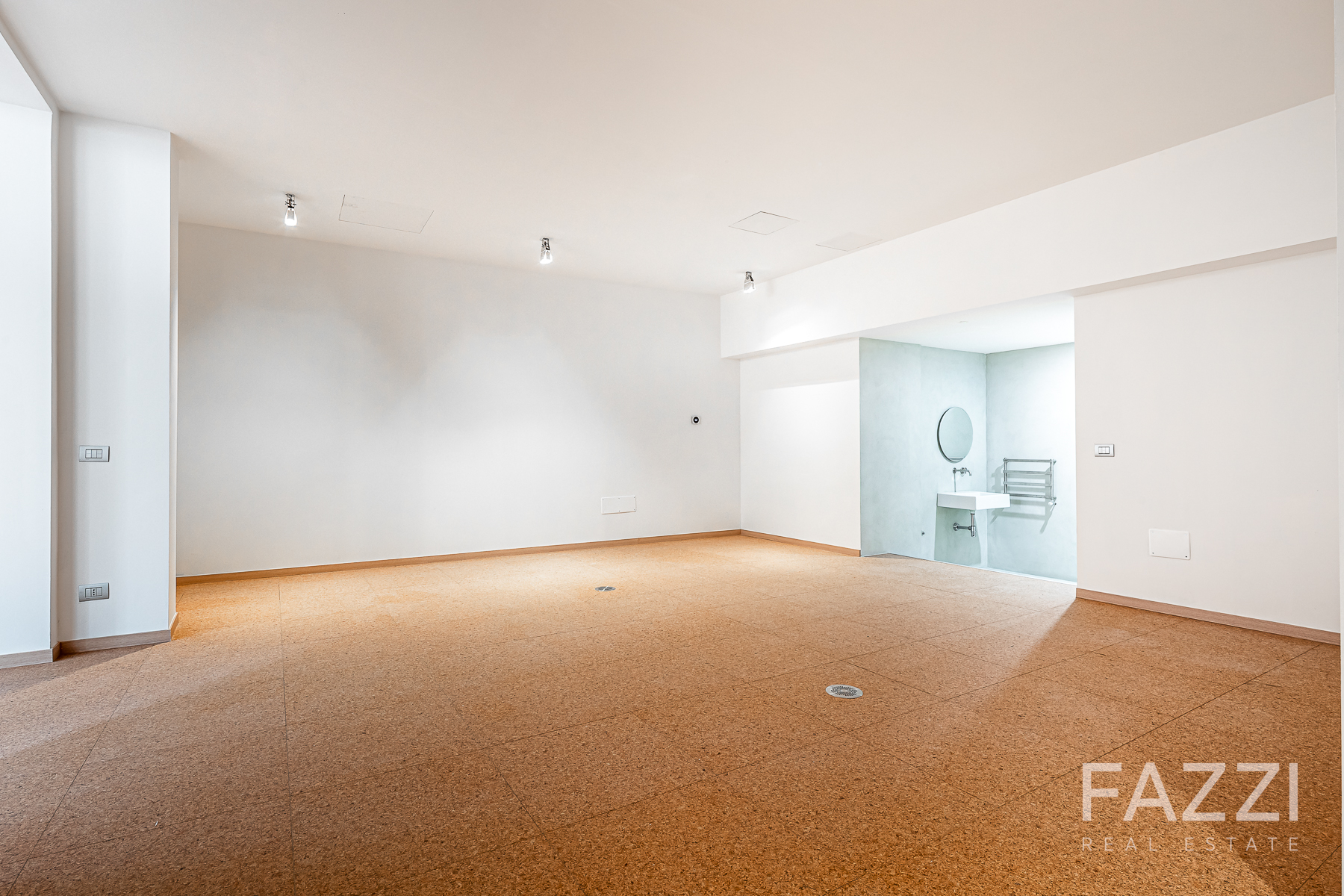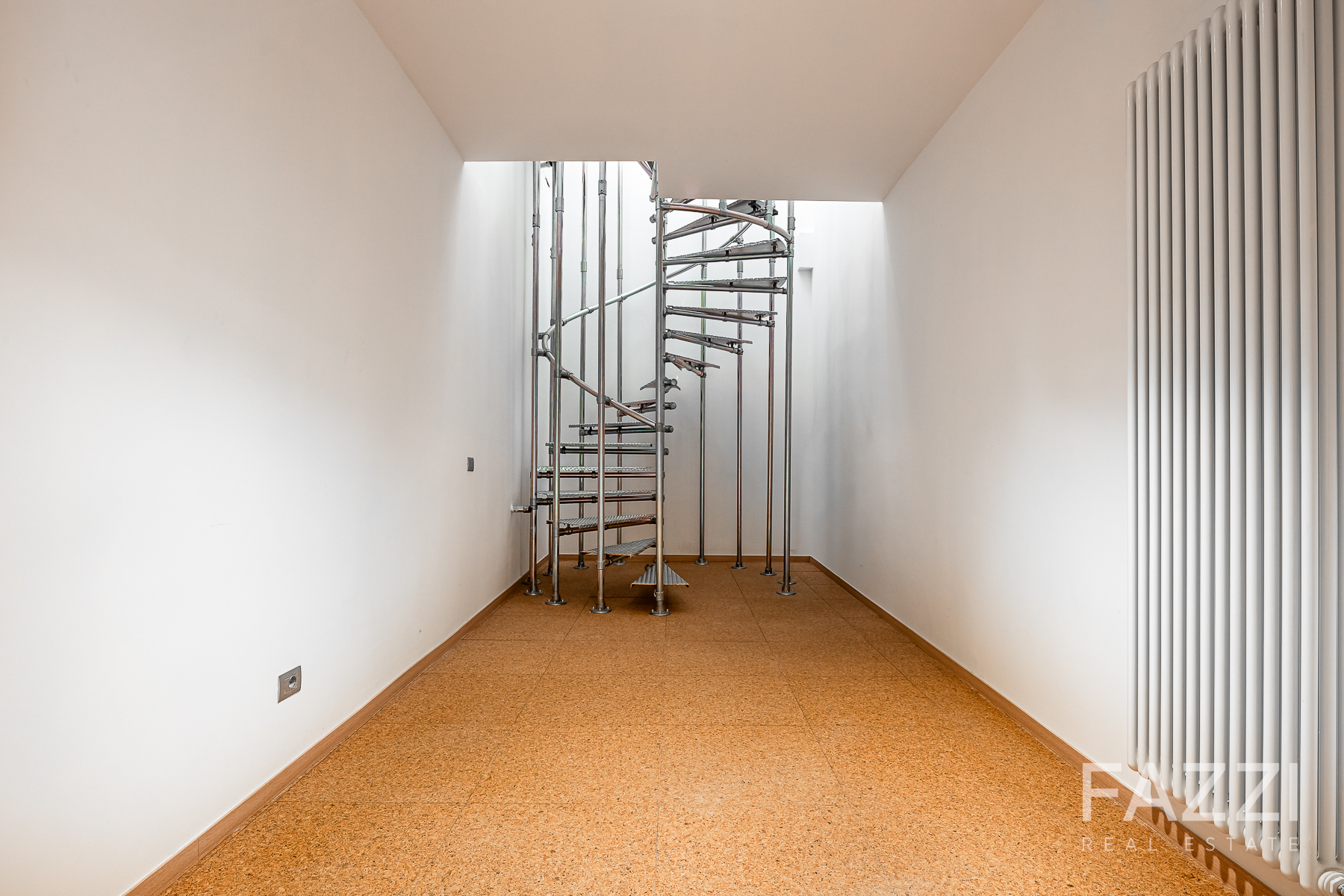 Entrando dal piano rialzato ci accoglie una grande scala che conduce al piano seminterrato. L’immobile risulta molto luminoso grazie alla posizione angolare e alle numerose vetrate. Pavimento galleggiante in sughero, impianto di VMC, predisposizione impianto aria condizionata, completamente cablato, infissi in alluminio in tripla camera, porta blindata elettrificata, altezze soffitti 4 mt.