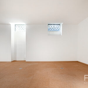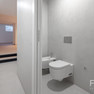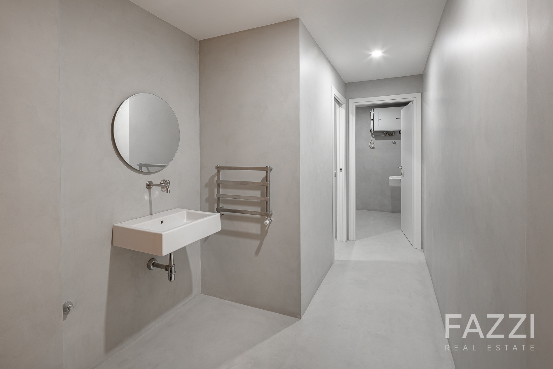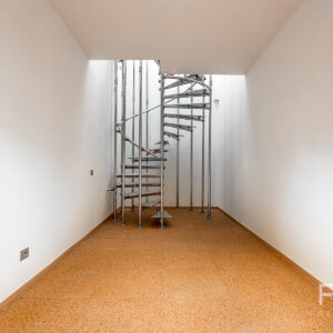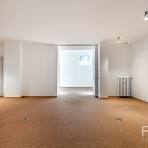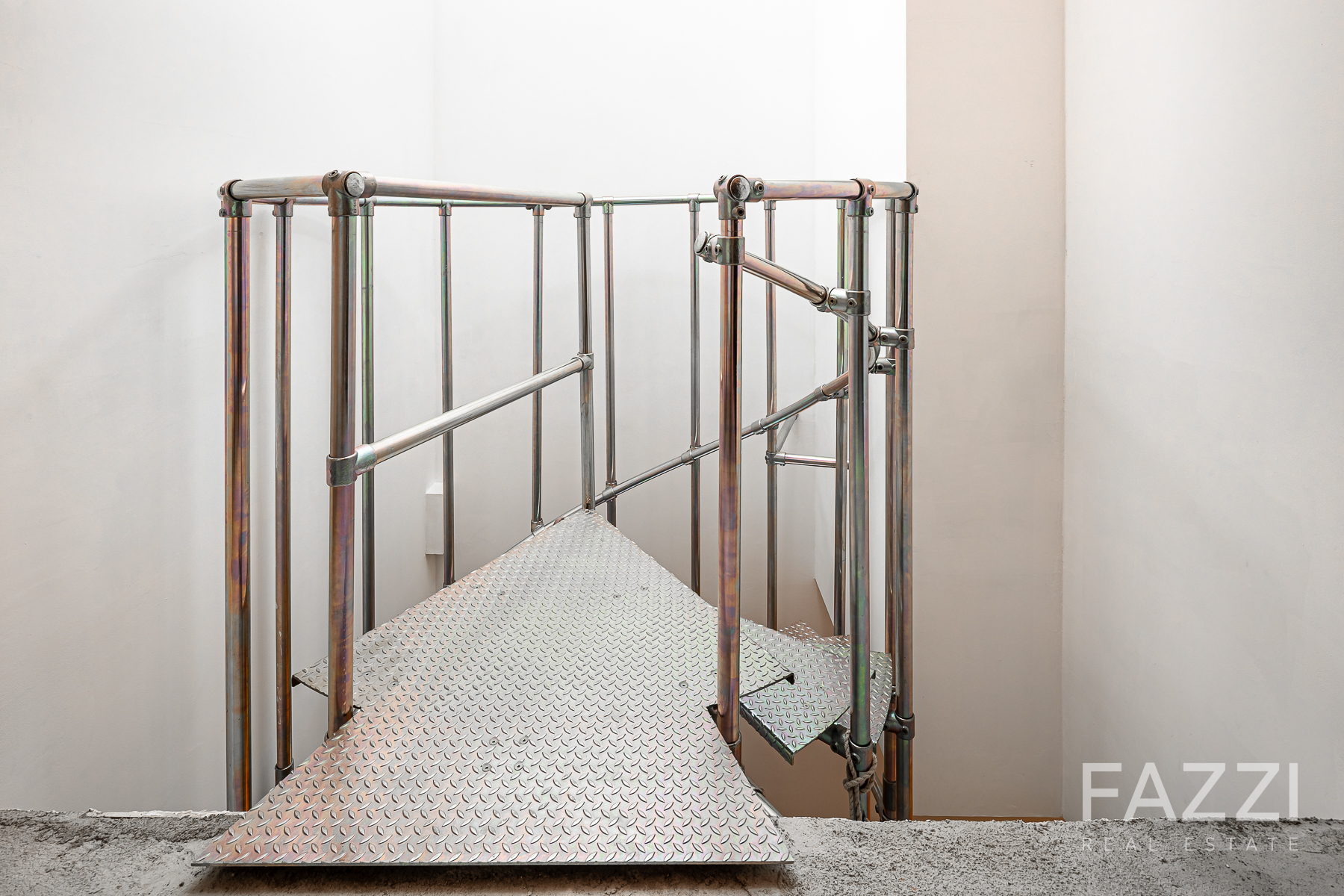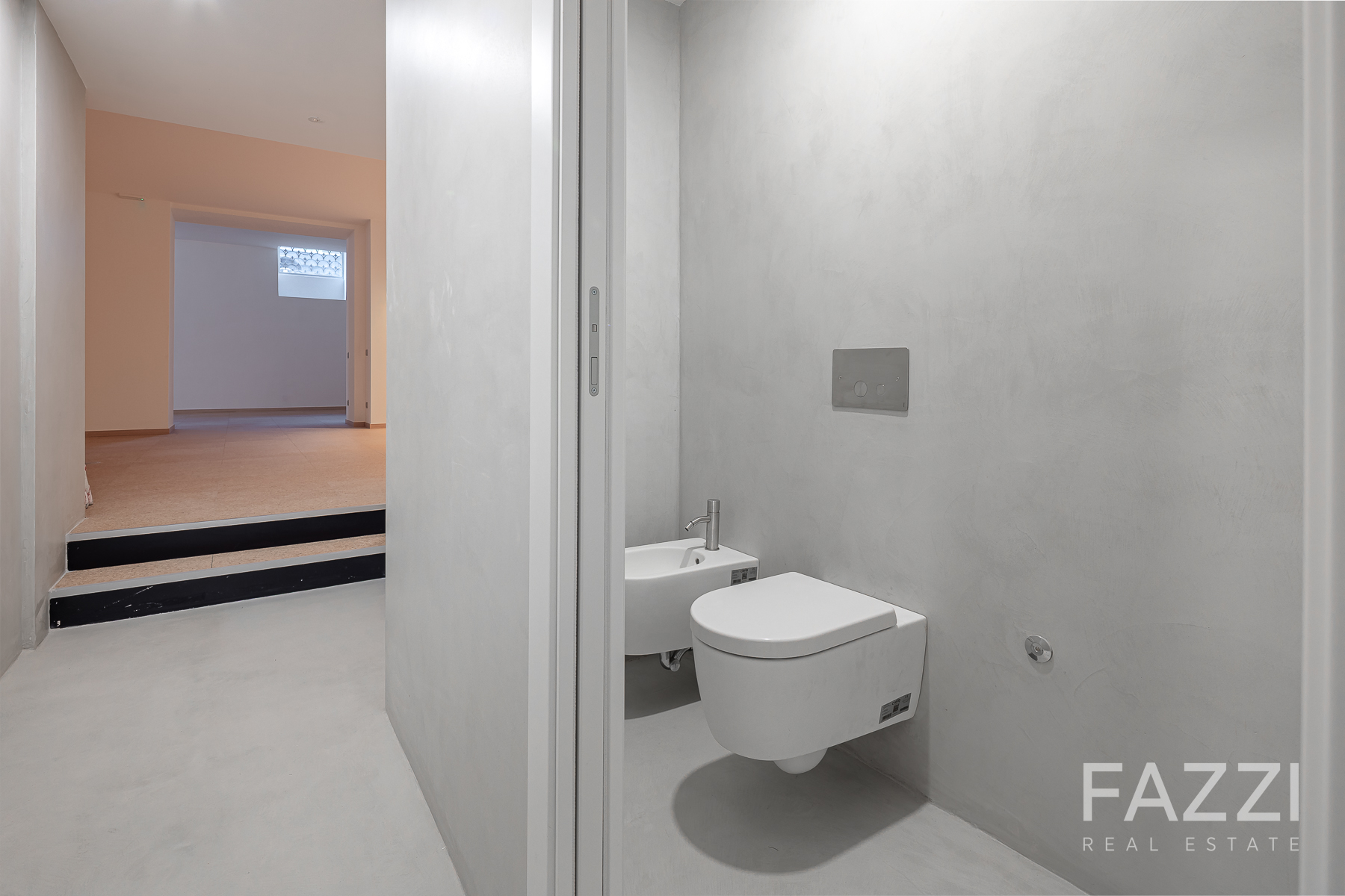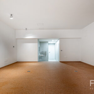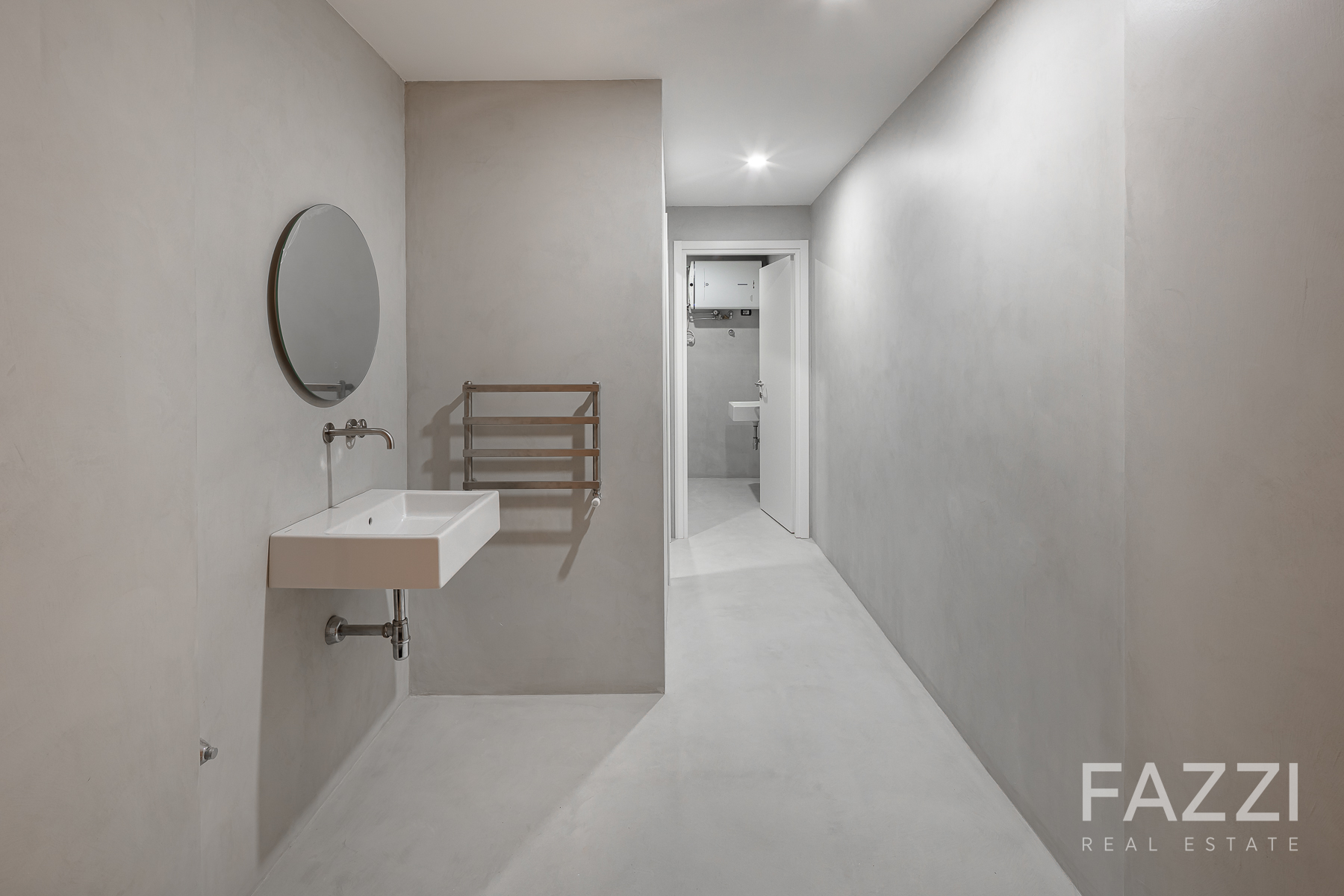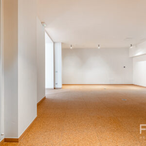 Entrando dal piano rialzato ci accoglie una grande scala che conduce al piano seminterrato. L’immobile risulta molto luminoso grazie alla posizione angolare e alle numerose vetrate. Pavimento galleggiante in sughero, impianto di VMC, predisposizione impianto aria condizionata, completamente cablato, infissi in alluminio in tripla camera, porta blindata elettrificata, altezze soffitti 4 mt.
