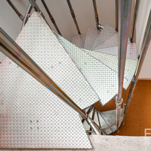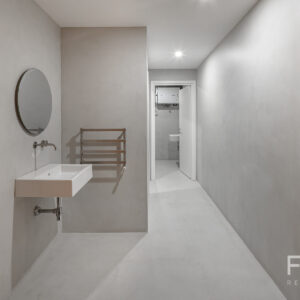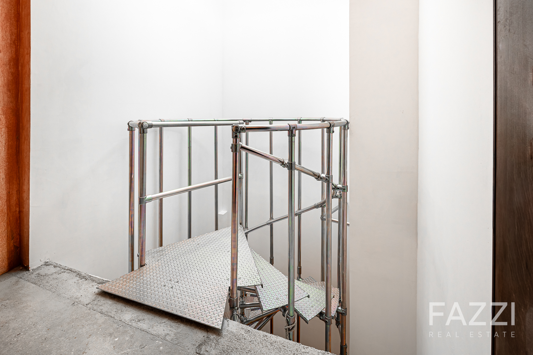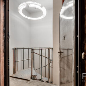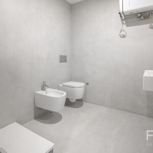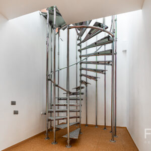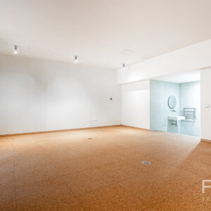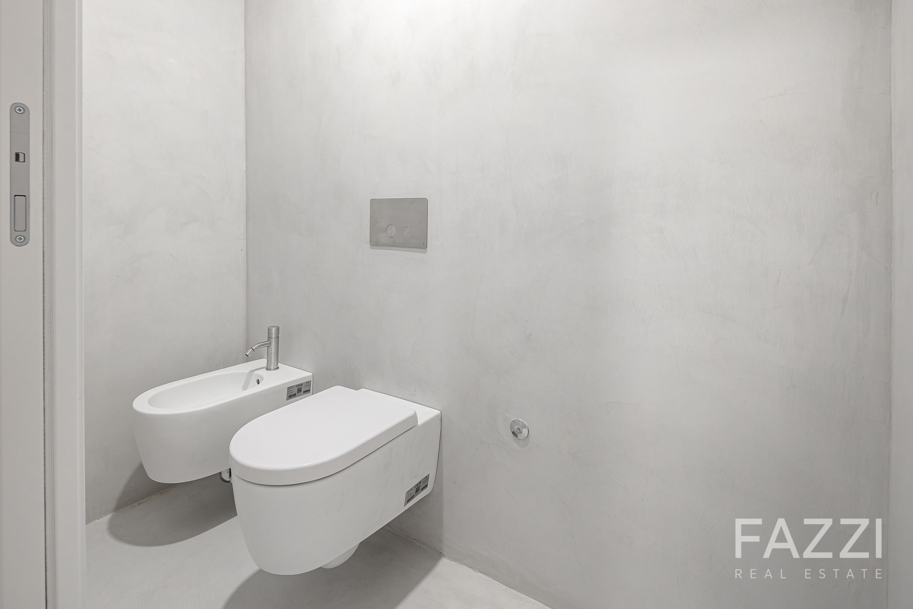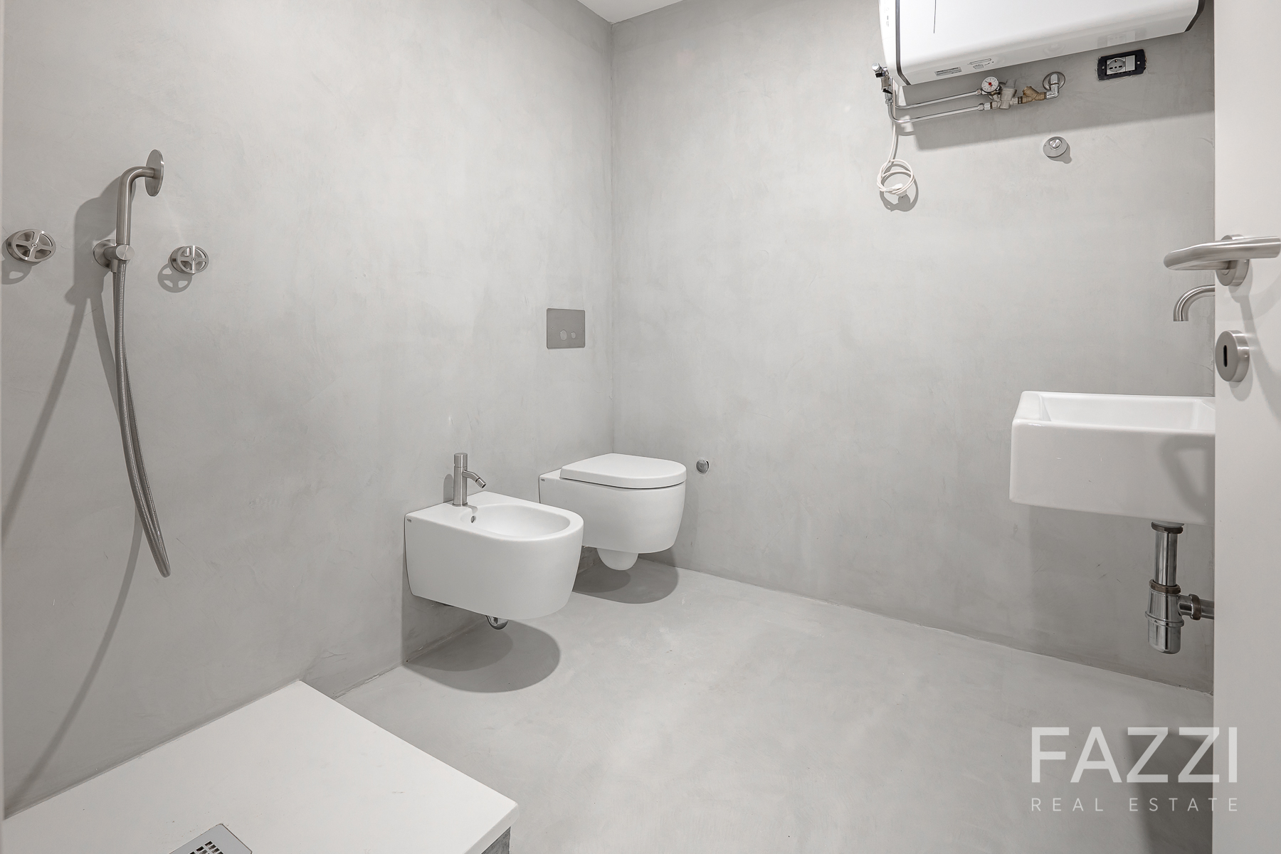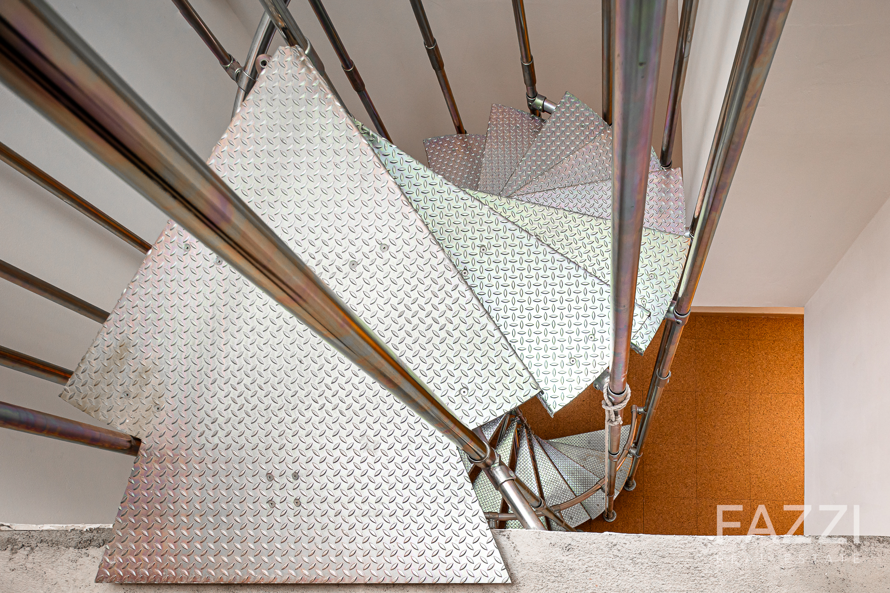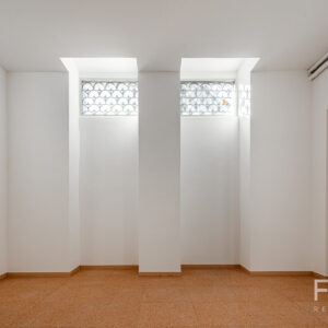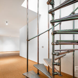 Entrando dal piano rialzato ci accoglie una grande scala che conduce al piano seminterrato. L’immobile risulta molto luminoso grazie alla posizione angolare e alle numerose vetrate. Pavimento galleggiante in sughero, impianto di VMC, predisposizione impianto aria condizionata, completamente cablato, infissi in alluminio in tripla camera, porta blindata elettrificata, altezze soffitti 4 mt.